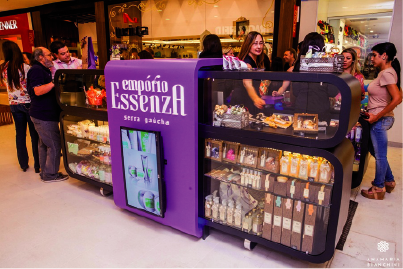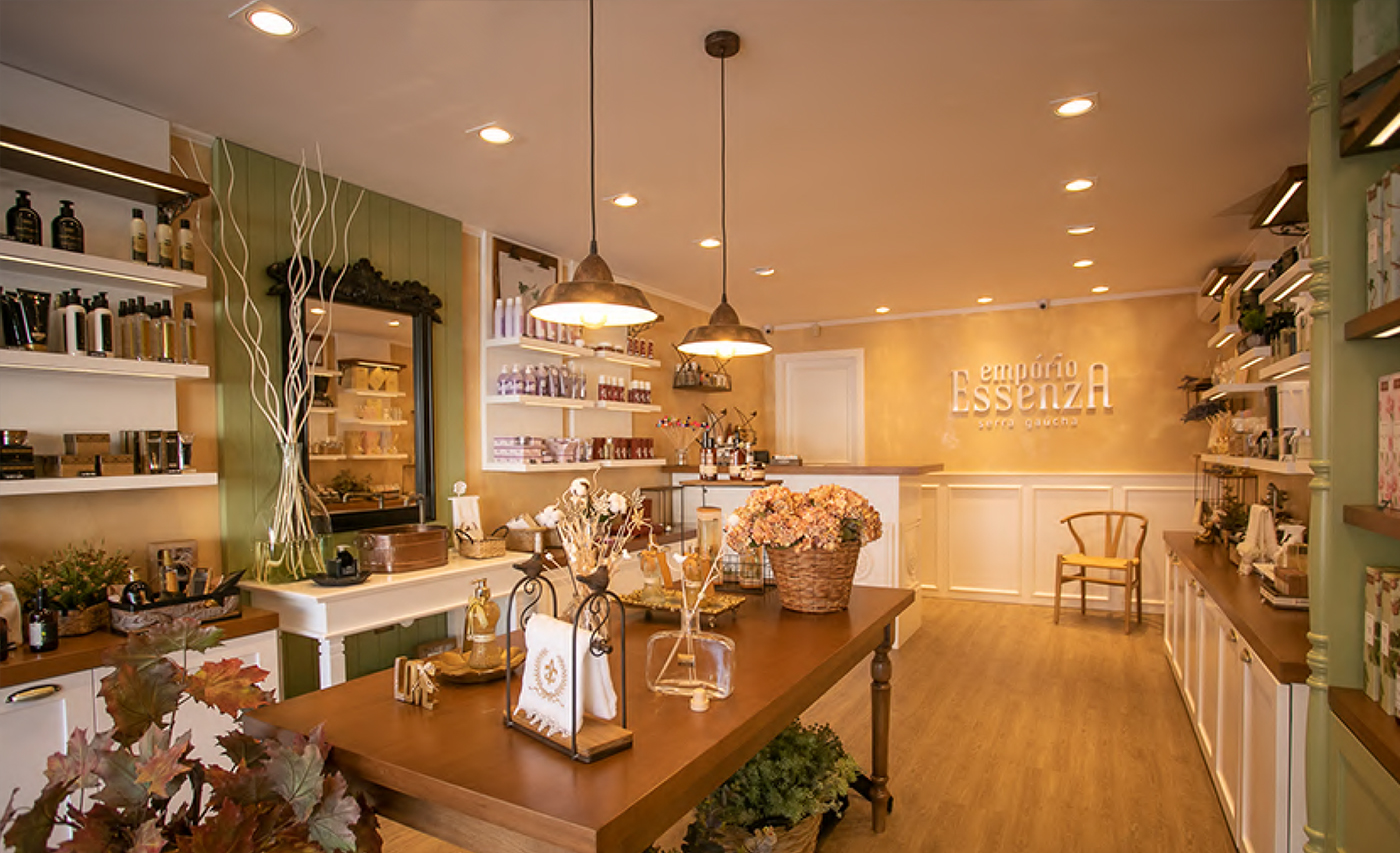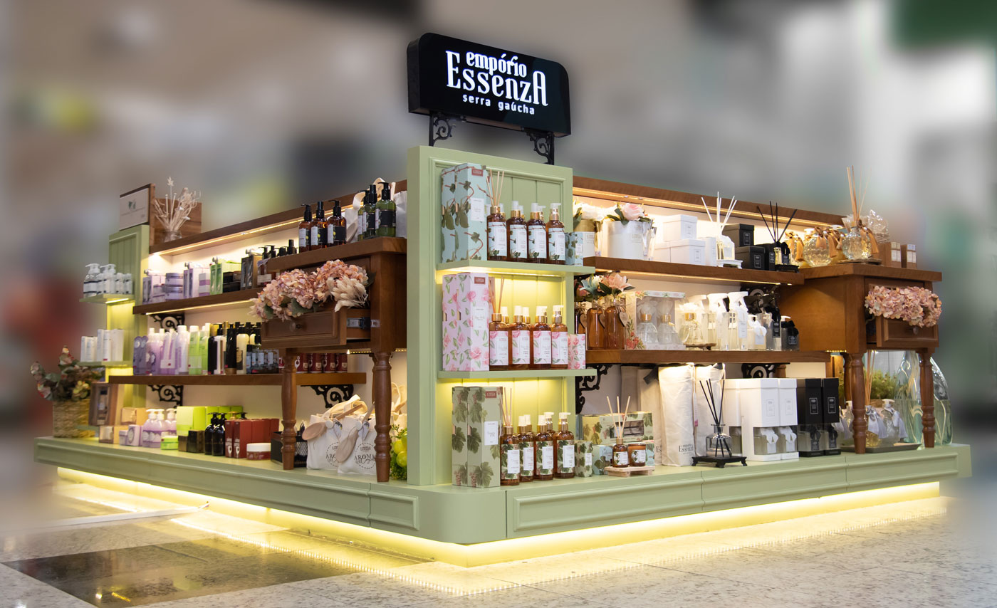 Após muito estudo e planejamento, no 2º semestre de 2021, apresentamos o nosso novo modelo de Quiosque e Loja. Um conceito inspirado 100% em nossas raízes e inspirações: a Serra Gaúcha. Com base em uma arquitetura clássica, que representa nos pequenos detalhes exclusivos, todo cuidado, carinho, amor e bem-estar que a Empório Essenza transmite através dos Aromas e Cosméticos.